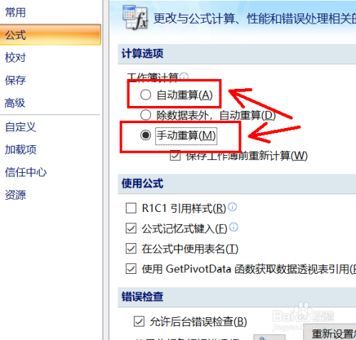 Excel2016表格怎么设置公式重算模式