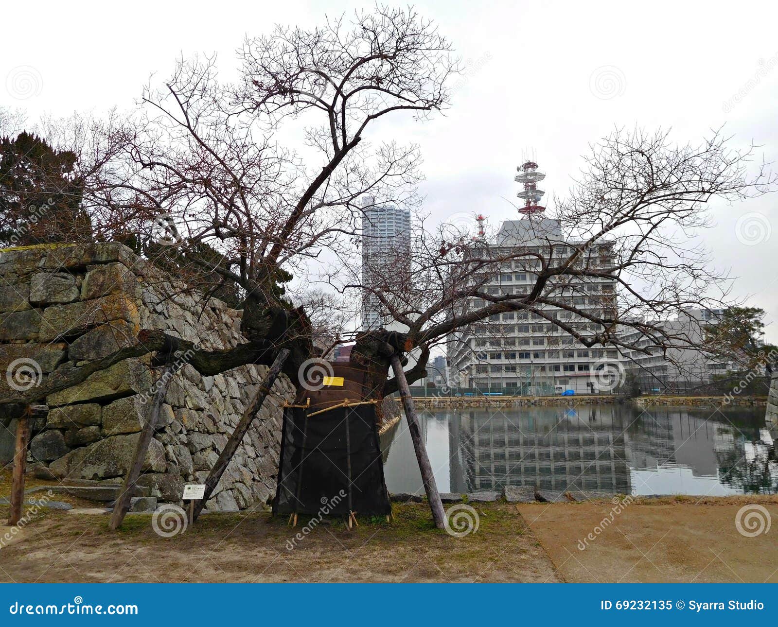 A Bombed Willow Tree At Hiroshima Castle Hiroshima Japan Stock