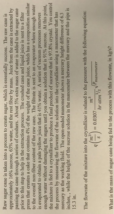 Raw Sugar Cane Is Taken Into A Process To Create S Chegg Com